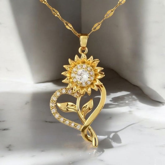 Girasol Heart™ Collar antiestrés de girasol giratorio bañado en oro 18k + anillo ajustable de regalo