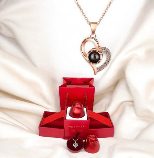 HotRose™ Conjunto con collar “te amo en 100 idiomas” en caja de rosa ascendente
