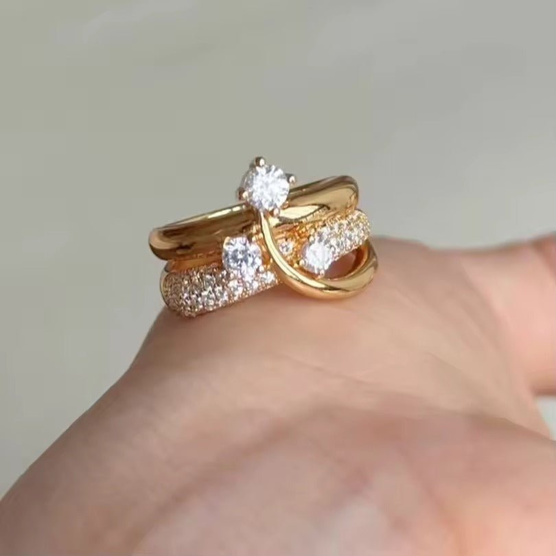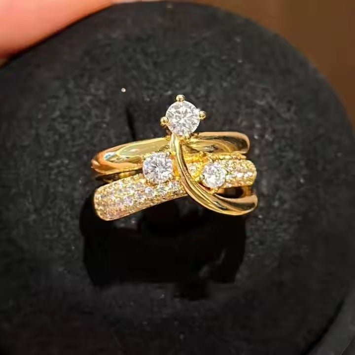 Carry me Estrella Fugaz™ Exclusivo anillo de 3 estrellas en doble capa, bañado en oro y ajustable
