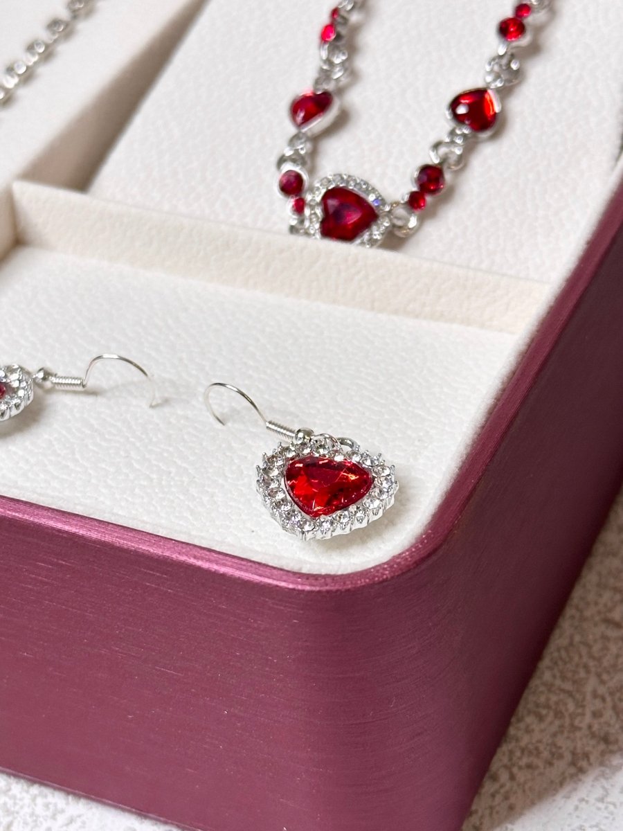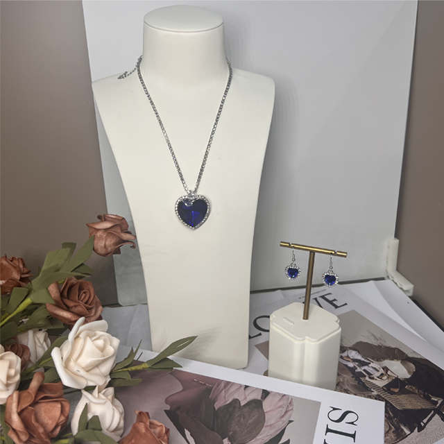 Pendiente de gancho, que combinan perfecto con el resto del conjunto. El corazón de cristal azul está rodeado de brillantes que destacan por sí mismos.
