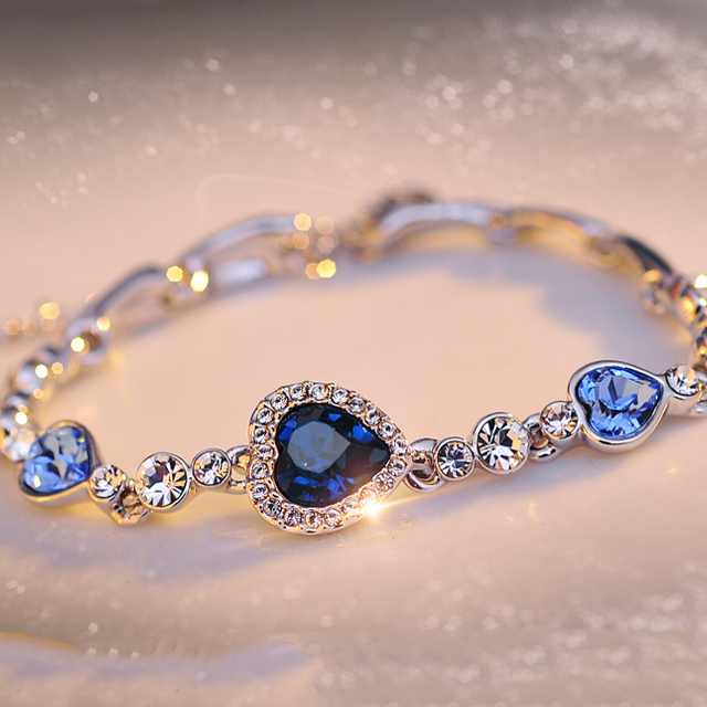 - La pulsera es conmovedora, combinando corazones azules y circones blancos.